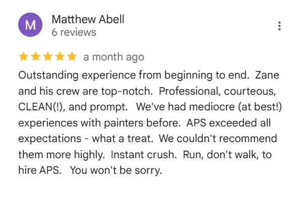 At American Painting Specialists, we combine over 150 years of experience with a commitment to quality, professionalism, and clear communication. Every project comes with a 100% satisfaction guarantee and up to a 5-year warranty, so you can feel confident in your investment. Our background-checked crews are reliable, respectful, and trained to deliver clean, efficient results. We provide detailed, transparent proposals, so you know exactly what to expect. As a BBB A+ rated company and trusted Team Dave Logan partner, we’re proud to be one of Colorado’s most reliable painting teams—delivering results that last, with service you can trust.